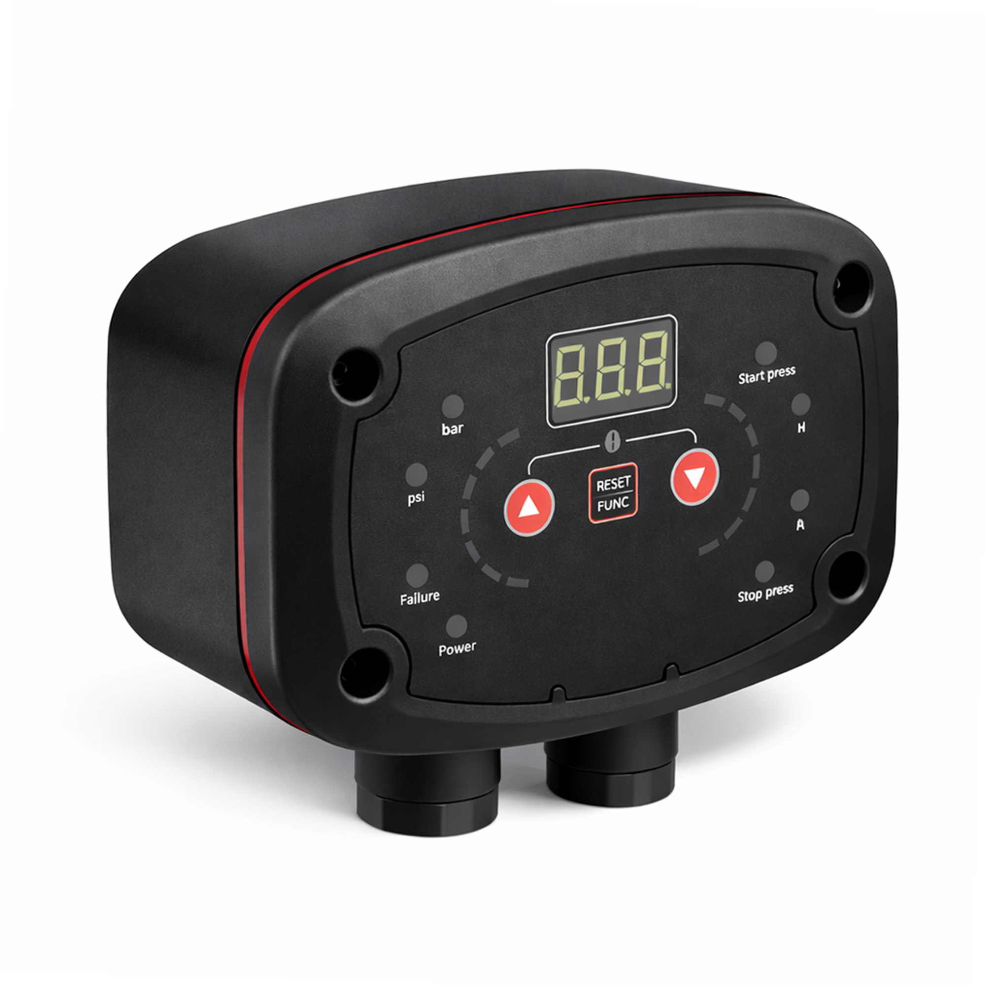 Elektronický tlakový spínač s digitální signalizací, který lze použít k řízení spouštění a zastavování jednofázových čerpadel do 2,2 kW.