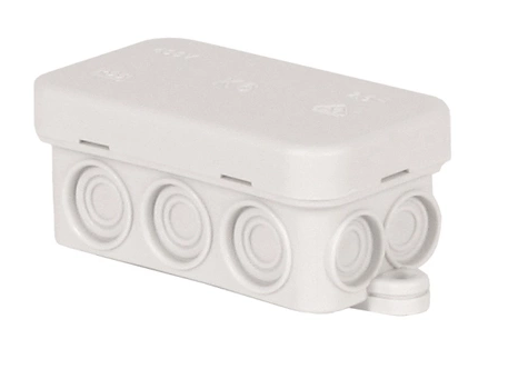 • Elektroinstalační krabice s naklapávacím víčkem v krytí IP55, rychlá a jednoduchá montáž, tělo krabice je vyrobeno z flexibilního plastového materiálu a víčko z tvrdého, odolnost proti mechanickým nárazům IK07, pro nástěnnou montáž (na omítku), pro umístění na kabelových žlabech, barva šedá (RAL 7035), samozhášivý, bezhalogenní, bez svorkovnice, otvory do krabice se provádějí propíchnutím vstupního otvoru nástrojem.