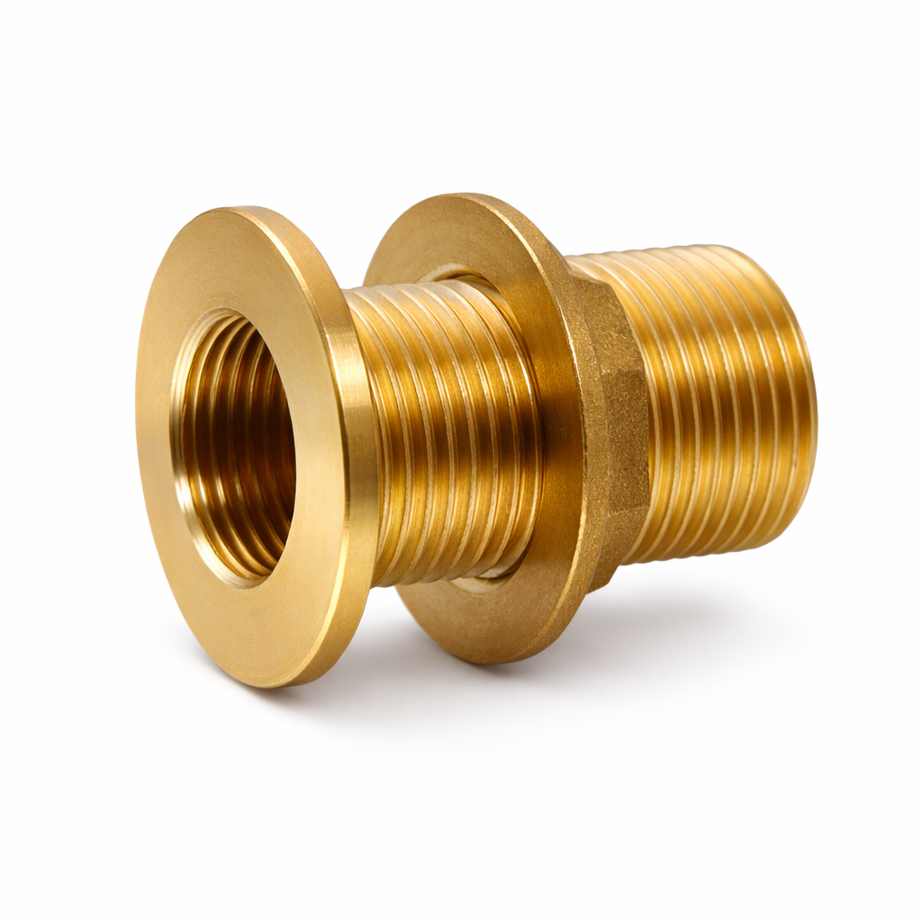 Mosazná průchodka k nádrži, vnitřní/vnější závit