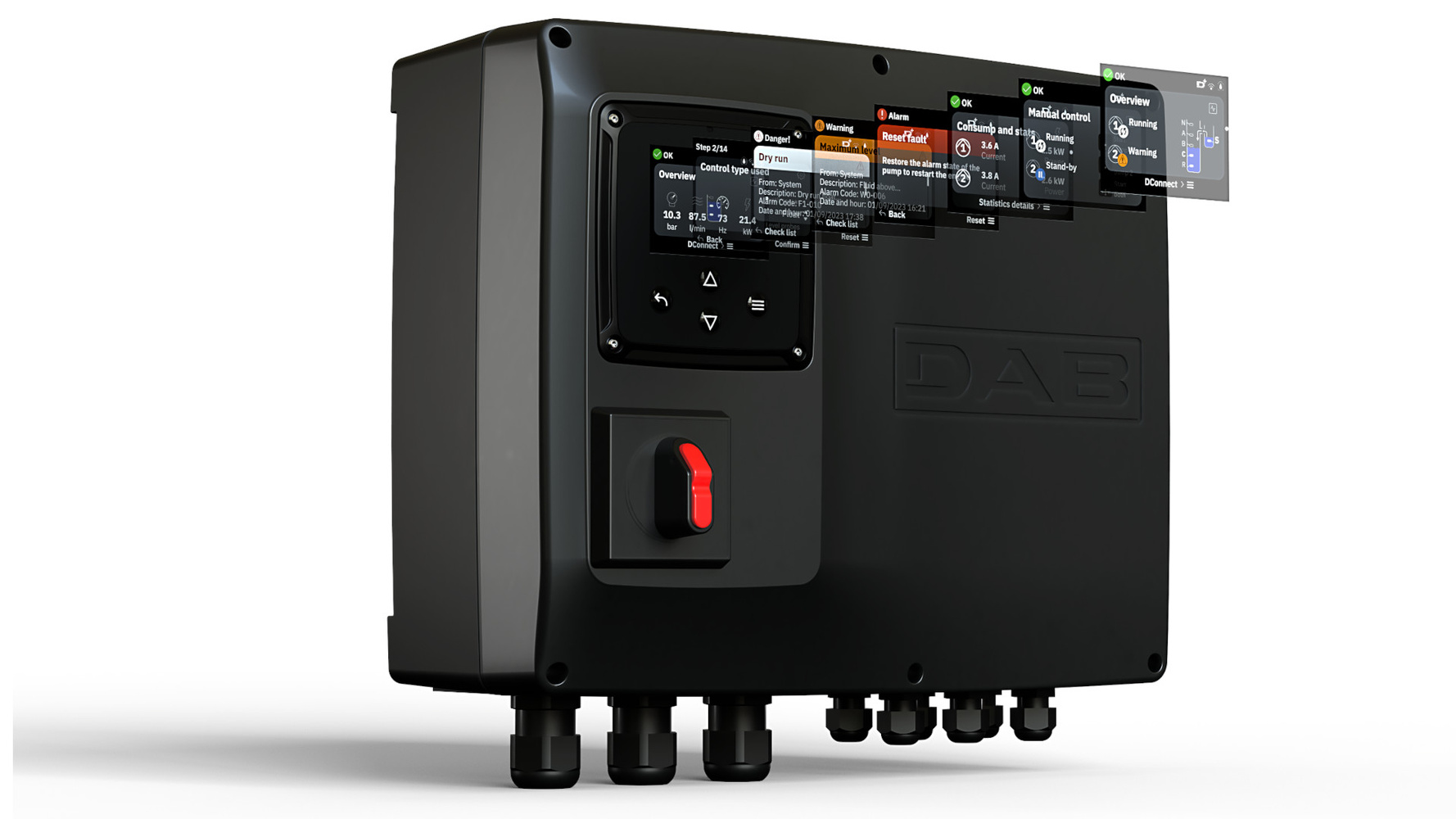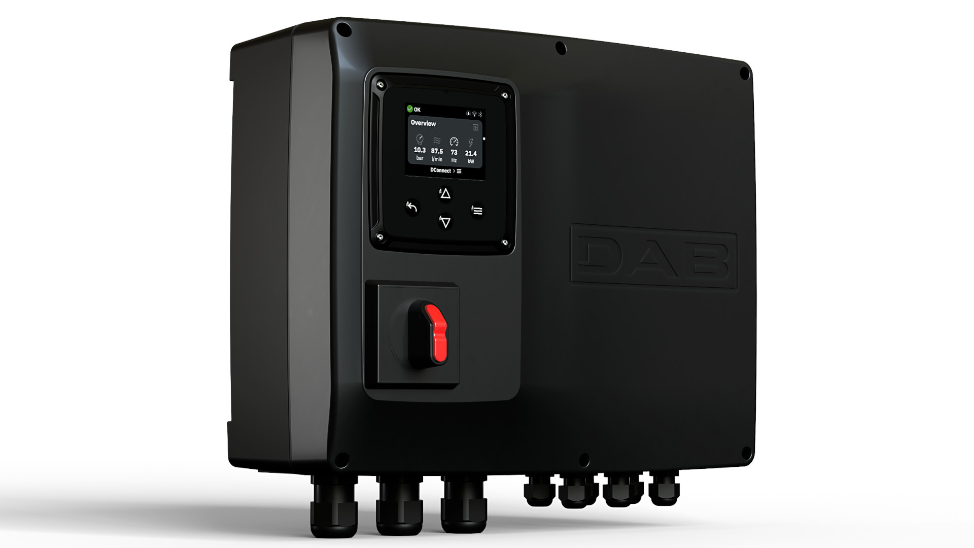 • Zajišťuje automatické spínání čerpadel podle hladiny vody, ochranu motoru proti přetížení a možnost monitoringu a ovládání systému na dálku přes Bluetooth/Wi-Fi a aplikaci DConnect.