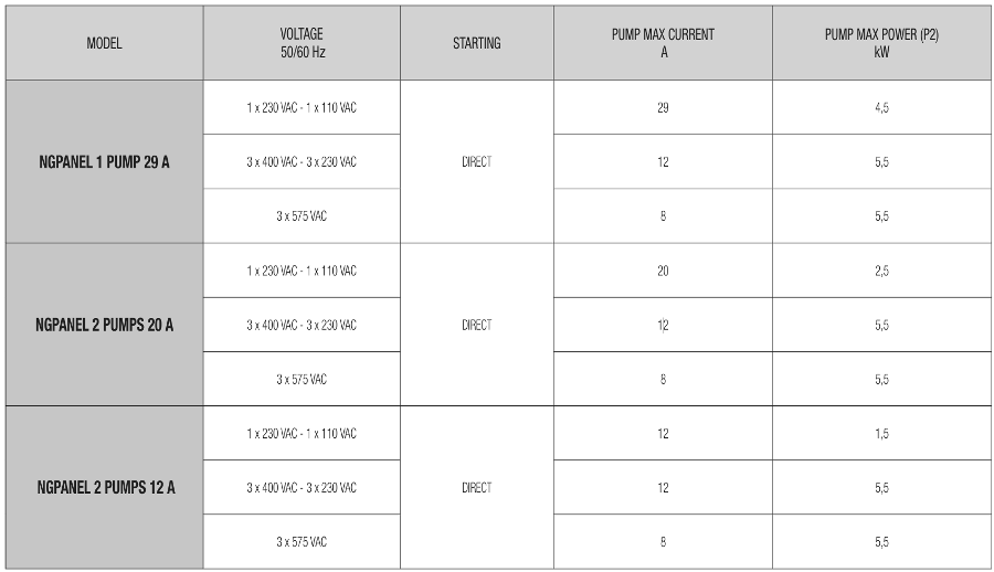 • Elektronický panel NgPanel je navržený pro řízení a ochranu jednoho nebo dvou čerpadel při plnění a vyprazdňování nádrží či jímek.