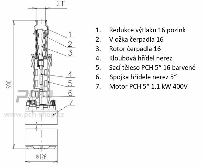 PCH 1"T-90-16, 400V, ponorné 5" čerpadlo, kabel 15m