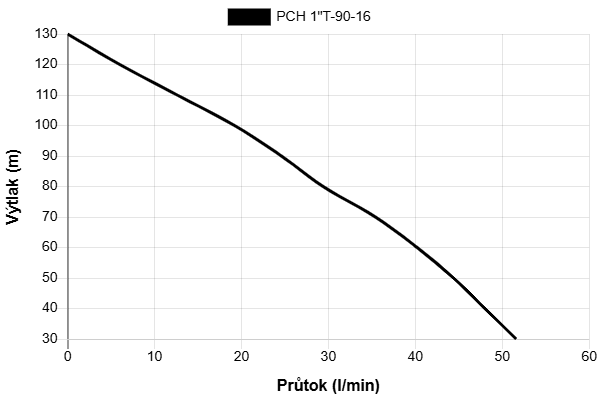 | PCH 1"T-90-16 | 400 | 1.1 | 2,3 | Výtlak (m) | 130 | 120 | 110 | 100 | 90 | 80 | 70 | 60 | 50 | 40 | 30 | 20 |