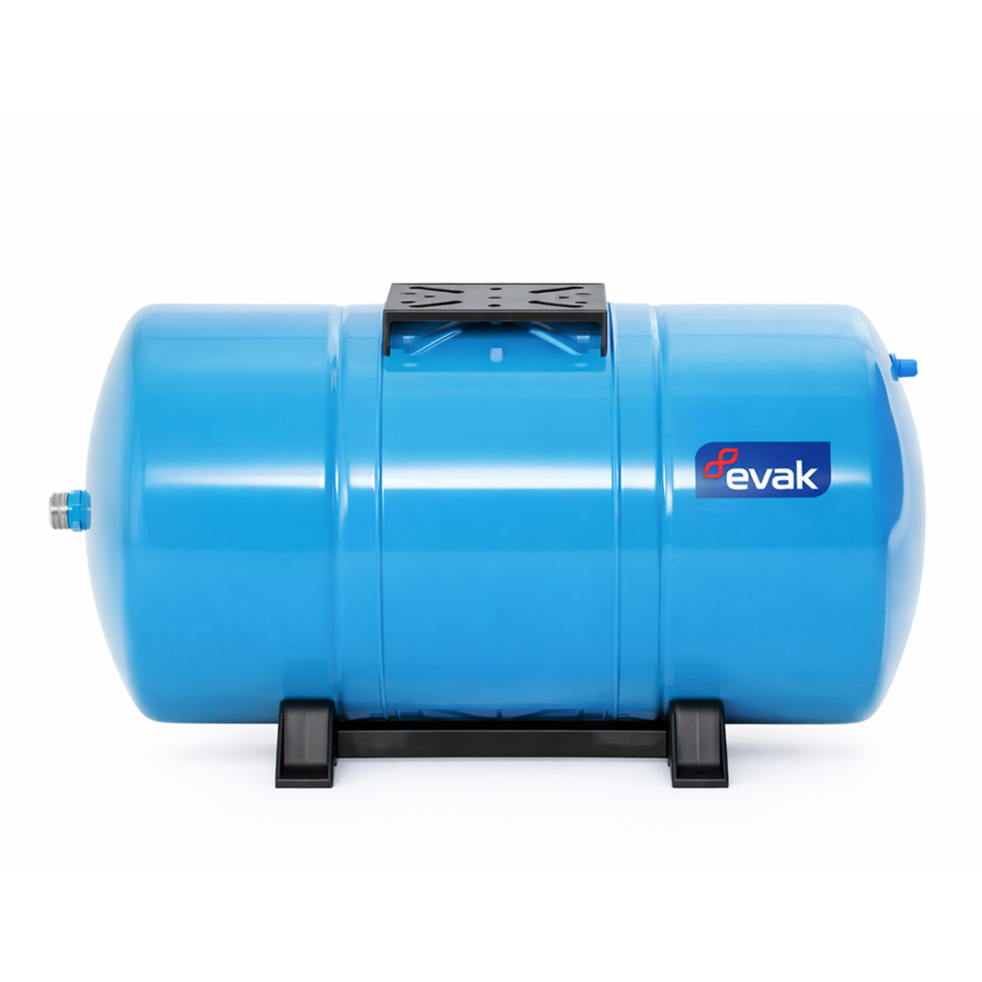 Membránová horizontální tlaková nádoba o objemu 80 litrů s nožkami a základnou pro osazení čerpadla - vhodná tedy i pro realizaci vodáren s povrchovým čerpadlem. Bezúdržbová, záruka 5 let.